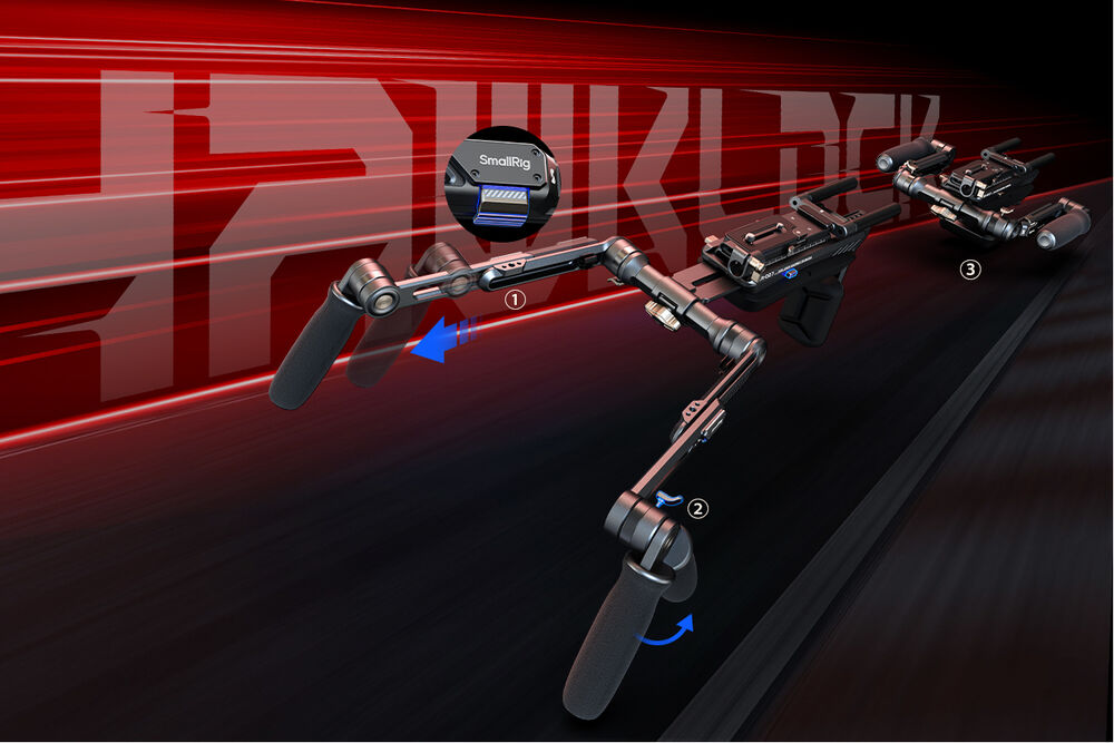 Los brazos se extienden utilizando el sistema SmallRig HawkLock, que garantiza su estabilidad de bloqueo.